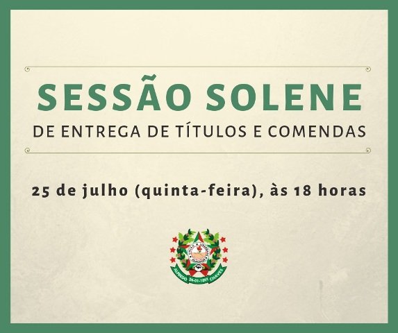 Já os nomes indicados para receber as Comendas são: Diego Pereira Azevedo (Comenda de Pacificação Social), Rosinéa Gaigher (Comenda de Honra ao Mérito Cultural) e Vera Lucia Bona (Comenda de Honra ao Mérito Cultural). A Sessão Solene para a entrega das condecorações acontece no Plenário Brasilito Pilon, Sede do Legislativo Municipal.